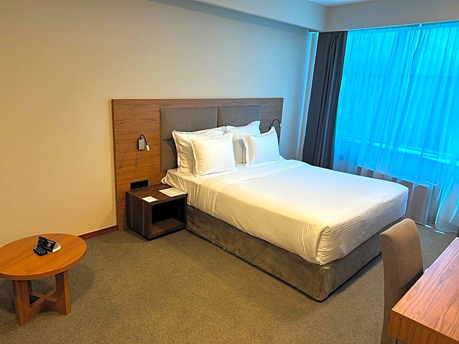 The spacious double room offers air conditioning, a mini-bar, as well as a private bathroom boasting a bath and a bidet. The double room has carpeted floors, a seating area with a flat-screen TV with cable channels, a wardrobe, a safe deposit box, as well as an electric kettle.