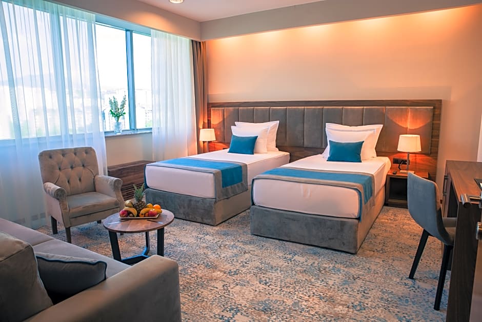 Air-conditioned suite featuring cable TV, a mini-bar and a private bathroom with bath or shower and a hairdryer. The suite has a seating area, a desk and a safety deposit box.